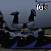 Description: The Batman landing awkwardly on his head after falling, captioned "fuk"